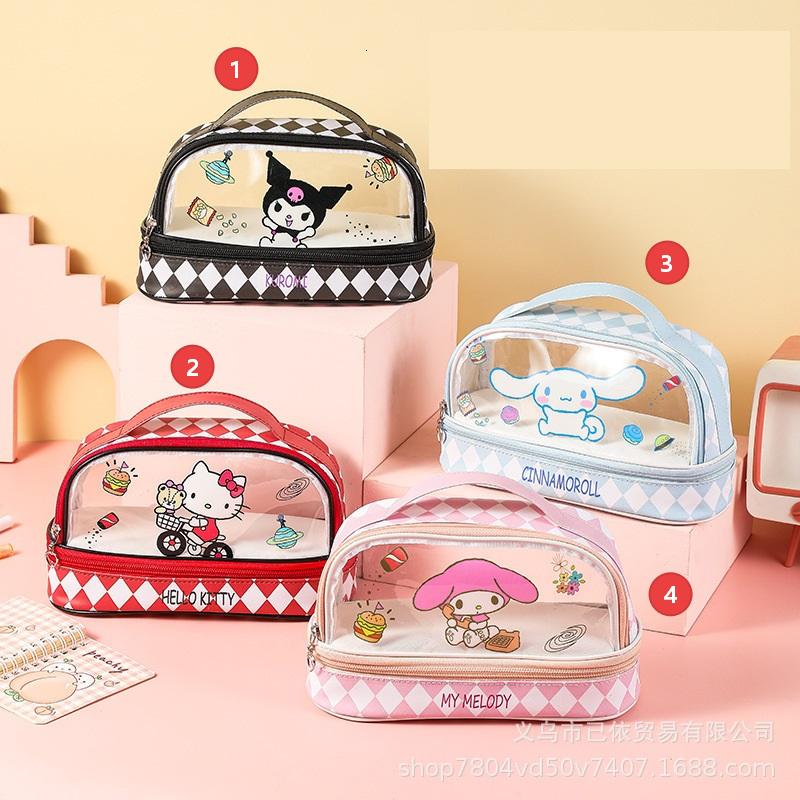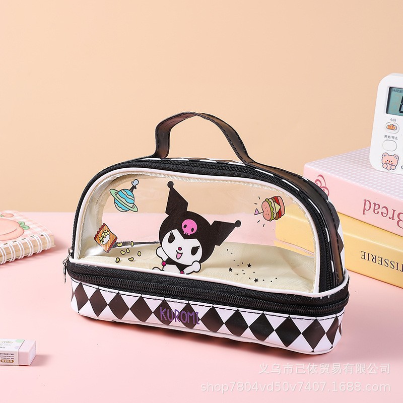 サンリオ クロミ 透明二層ペンケース 大容量 小学生向け 筆箱 ハンドル付き キャラクター 鉛筆箱
