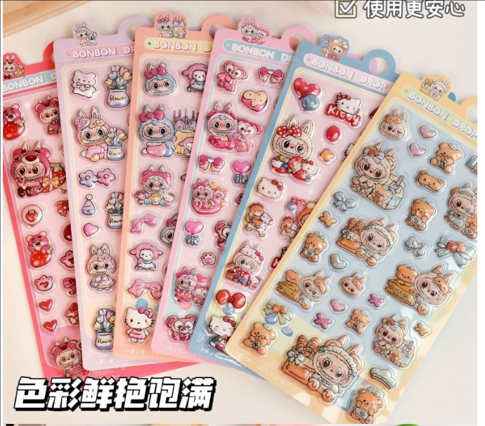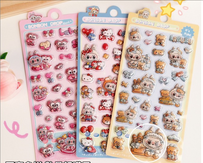 ラブブ(LABUBU) 3D立体エンボスシール|可愛いキャラクター|女の子向け スマホケース・水筒DIY デコステッカー