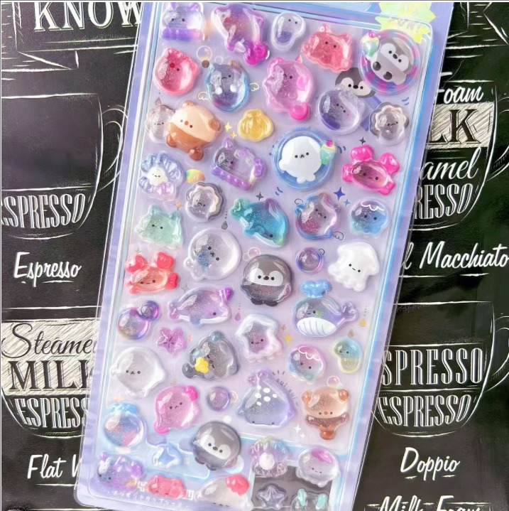 カートゥーン 3D立体デコステッカー|水晶風 キラキラ ダイヤモンド調 子供用 可愛い 浮き彫りシール 女の子向け