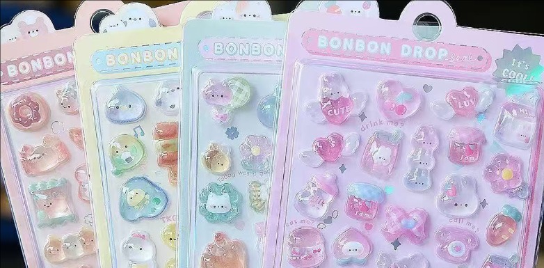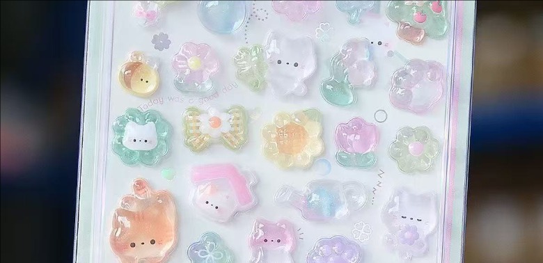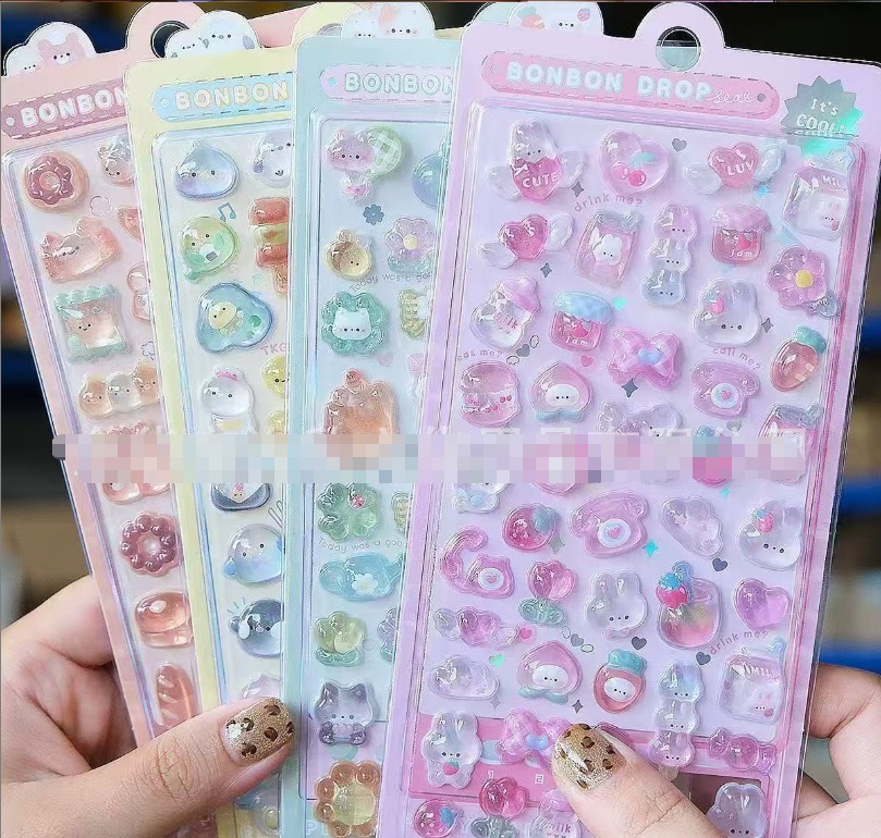 子供用 3D立体エンボスシール|宝石風 カートゥーン 可愛い デコステッカー 女の子向け スマホ装飾 ミニイラスト