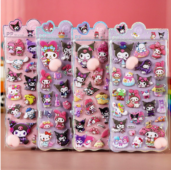 【可愛さぎゅっと!大人気キャラクターステッカー】 可愛さ満点の立体ぷっくりキャラクターステッカーが登場! キラキラ背景×ふんわり立体デザインで、貼るだけで一気に華やかに✨ 手帳・スマホケース・ノート・ペンケースなど、 毎日使うアイテムを自分だけの可愛い空間にアレンジできます。 お子様から大人まで楽しめるデザインで、 プチギフト・プレゼント・まとめ買いにもおすすめです♪