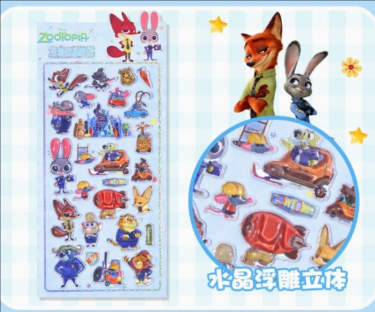 ズートピア 3D立体クリスタルステッカー|エポキシ樹脂 浮き彫りデザイン かわいいキャラクター スマホケース用シール 子供・男女兼用