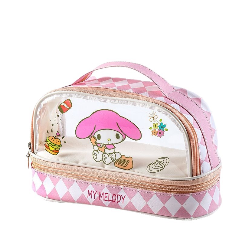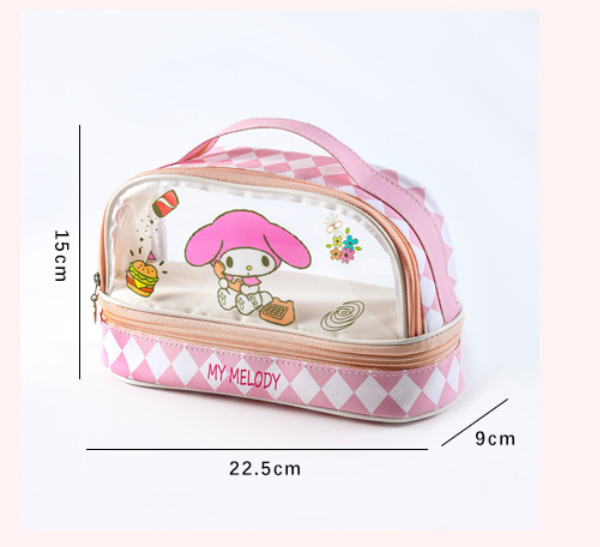 サンリオ クロミ 透明二層ペンケース 大容量 小学生向け 筆箱 ハンドル付き キャラクター 鉛筆箱
