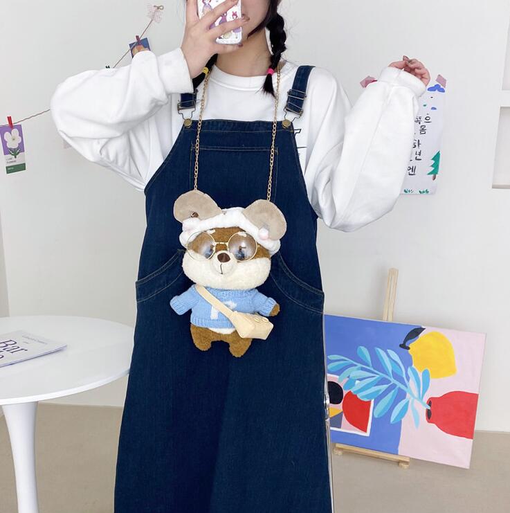 新しいキャンバスバッグ少女かわいいクマバッグ