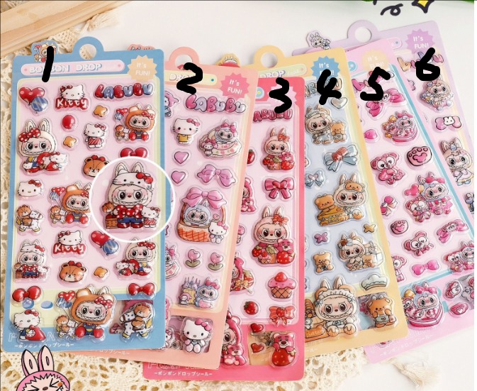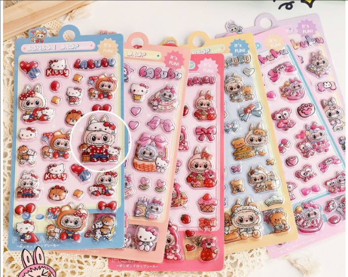 ラブブ(LABUBU) 3D立体エンボスシール|可愛いキャラクター|女の子向け スマホケース・水筒DIY デコステッカー