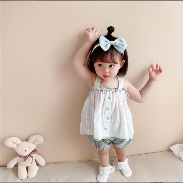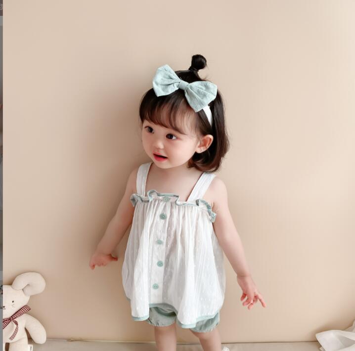 超人気 夏★サスペンダー+パンツ+ヘアバンド★赤ちゃん 夏服★ファッション赤ちゃん3点セット★66-100