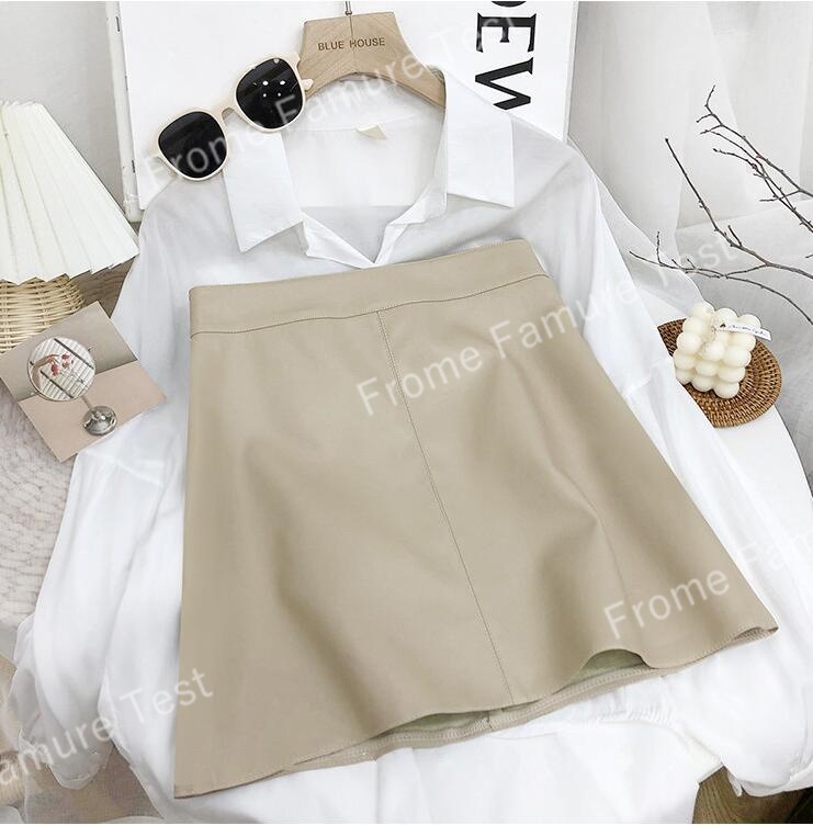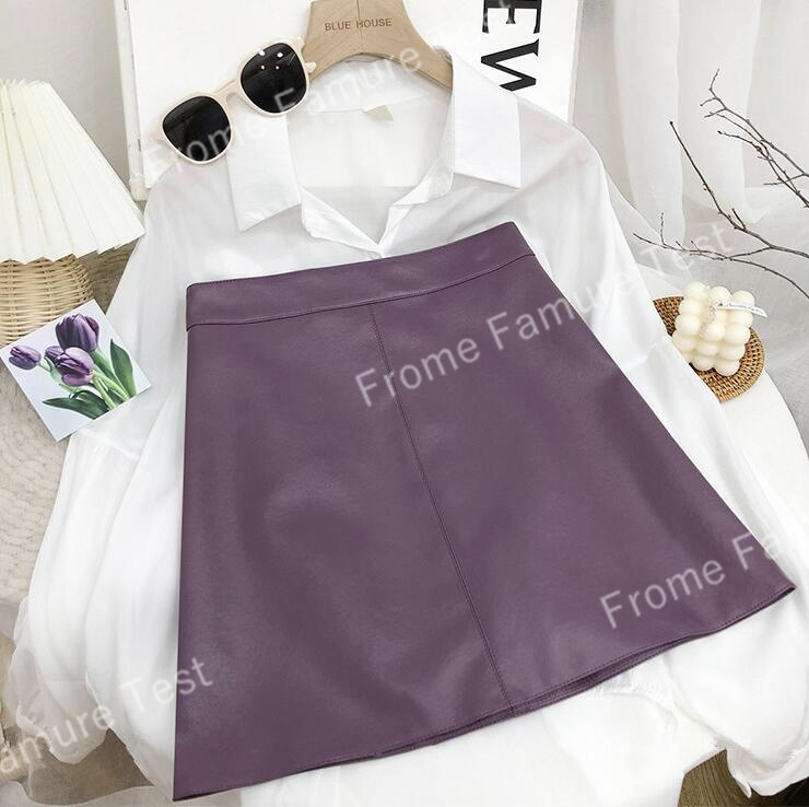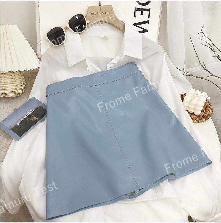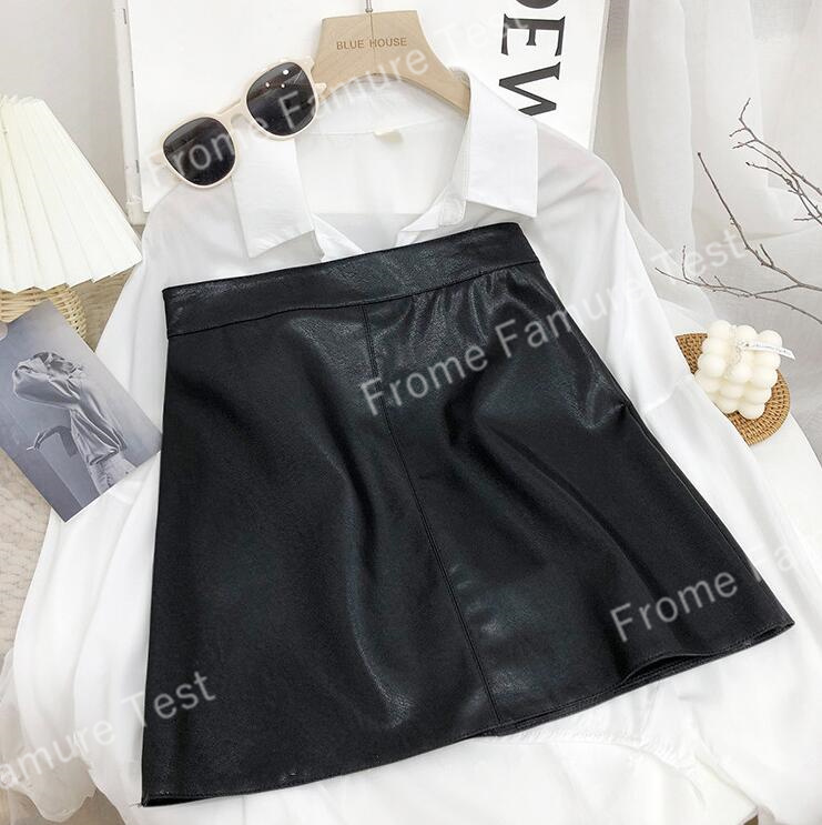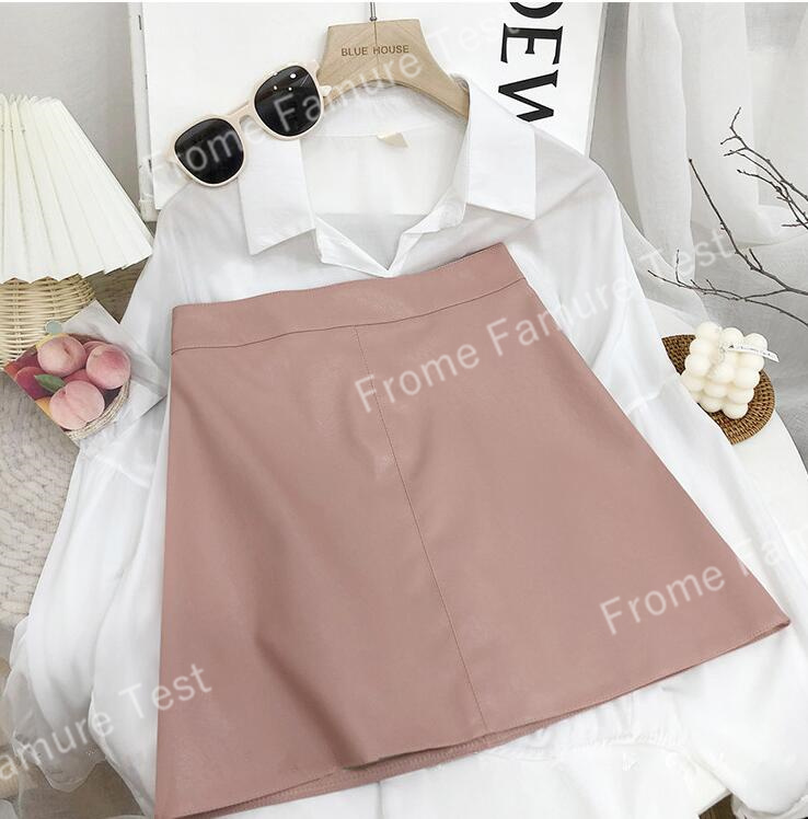 春の新作韓国風ハイウエストスモールレザースカートレディースヒップスカートAラインショートスカート