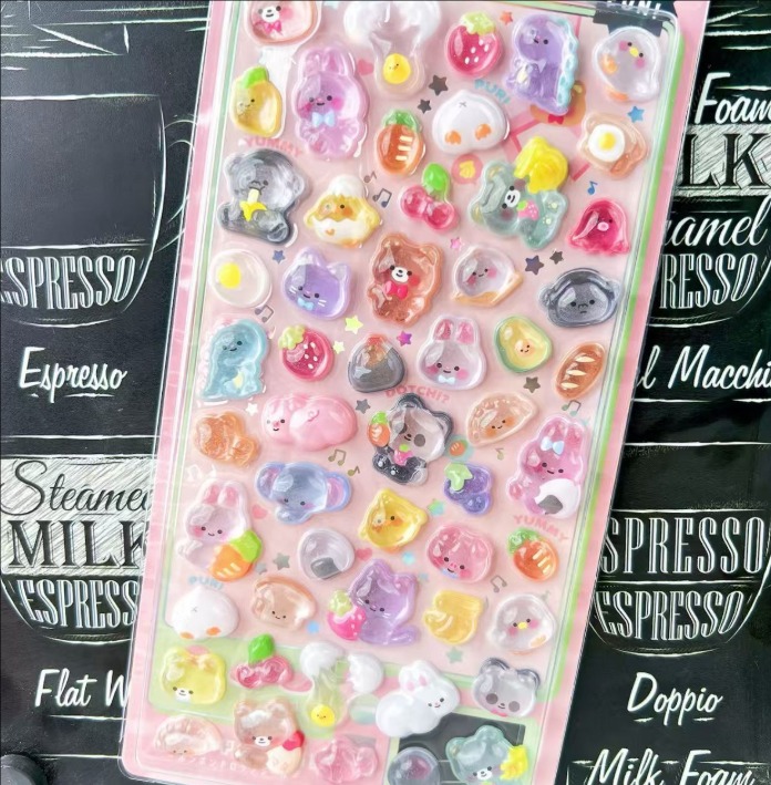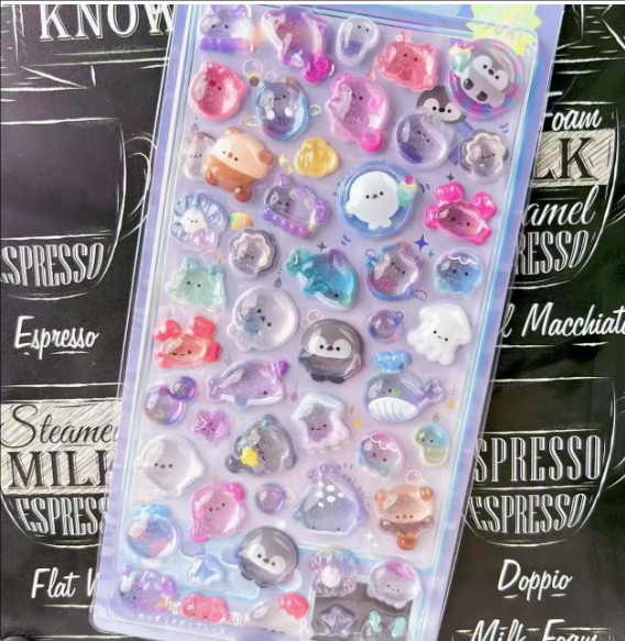 カートゥーン 3D立体デコステッカー|水晶風 キラキラ ダイヤモンド調 子供用 可愛い 浮き彫りシール 女の子向け