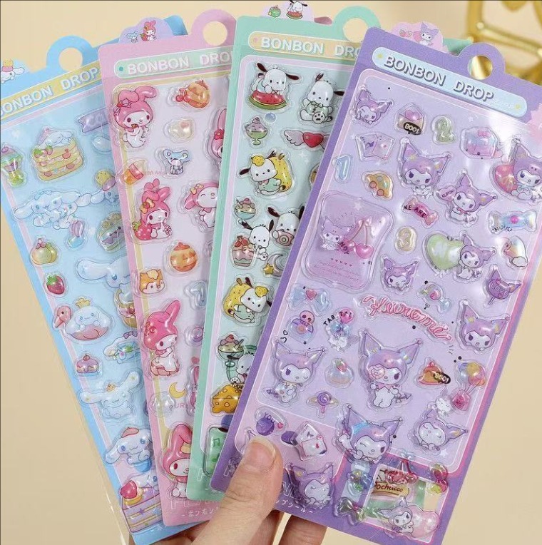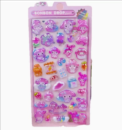 子供用 3D立体エンボスシール|宝石風 カートゥーン 可愛い デコステッカー 女の子向け スマホ装飾 ミニイラスト